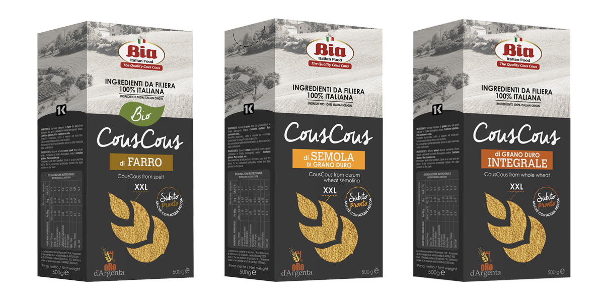 Under the Oro d’Argenta emblem, the wheat utilised to make the couscous is 100% Italian origin. Grown in Emilia-Romagna, traceability at all stages of production and strict quality control measures are employed. In turn, the wheat is used to produce the highest quality of couscous with a wonderful natural wheat flavour and mouth feel.