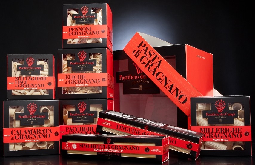 Bronze drawn dies (used to produce various shapes) are used traditionally in the production of Gragnano PGI pasta. They are synonymous with quality as they give the pasta a rough surface which allows the sauce to coat the pasta better. By extruding the pasta slowly through the die, excessive heating is avoided and the pasta does not begin to cook, preventing the Maillard reaction (caramelisation of sugars) in the starch. Pasta produced in this way retains its organoleptic properties and its natural porousness, allowing the correct release of starch which is not possible with pasta made using teflon dies. The pasta is then dried at low temperatures (to protect the wheat protein, lycine).
